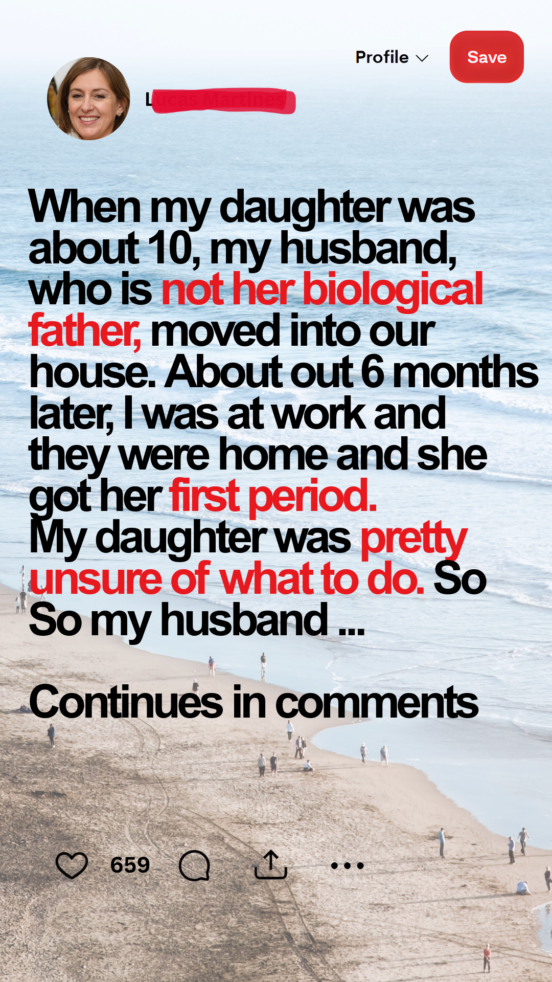 When my daughter was about 10, my husband, who is not her biological father, moved into our house. About 6 months later, I was at work and they were home when she got her first period. My daughter was pretty unsure of what to do.