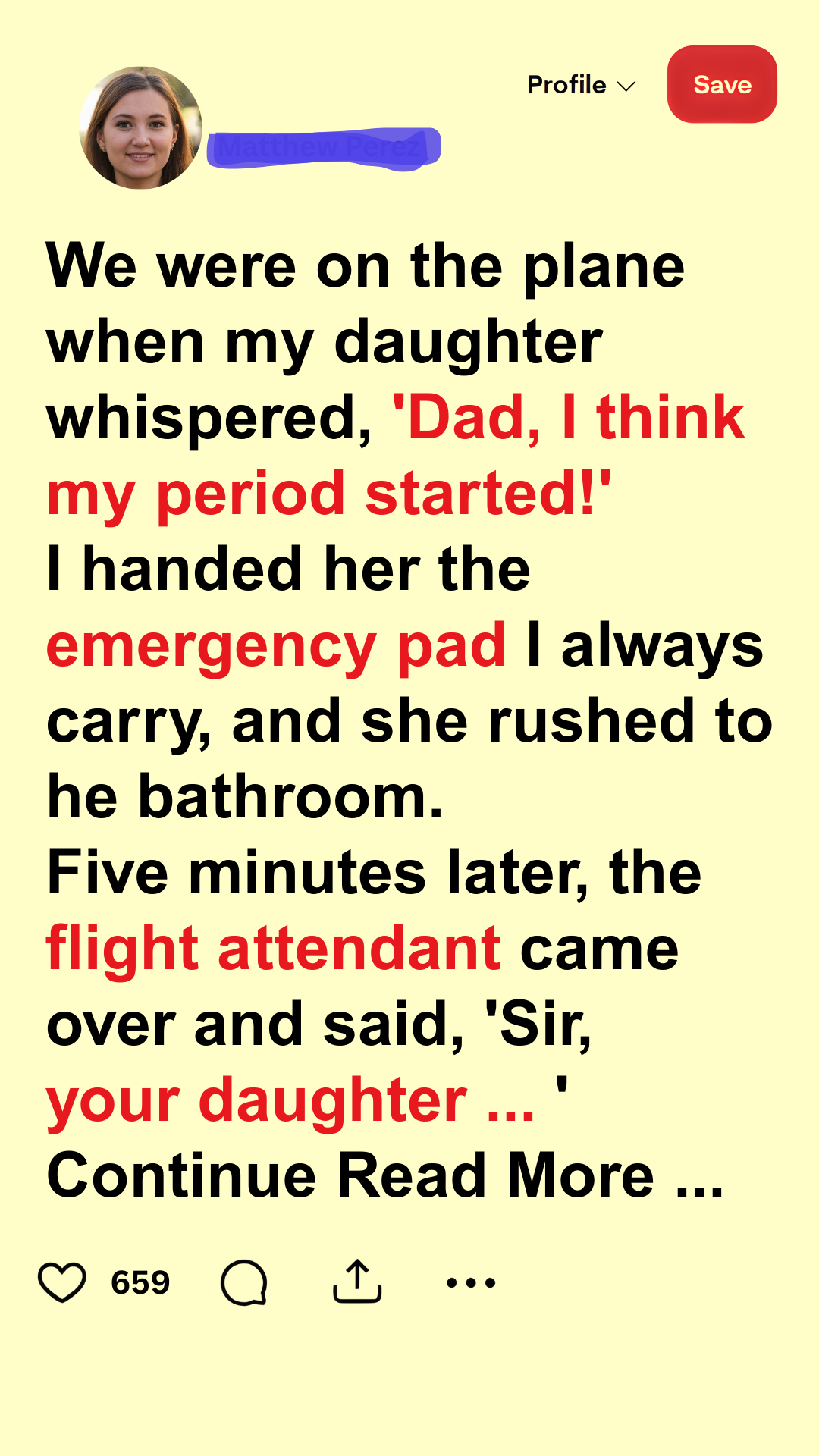 I stood up immediately and followed her down the narrow aisle of the plane. My mind was racing. It was her first period, and I knew she was already embarrassed about it. The last thing I wanted was for her to feel alone.