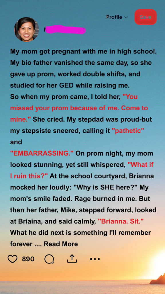 When I invited my mom to my senior prom to make up for the one she missed raising me alone,...