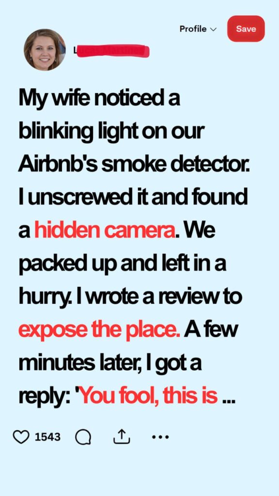 While staying at an Airbnb, the narrator’s wife noticed a faint, blinking light on the smoke detector. It seemed insignificant...