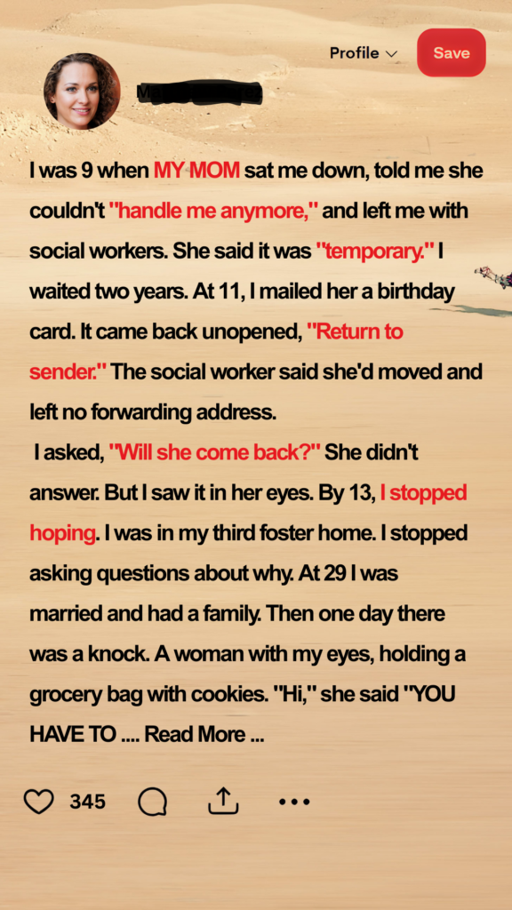 Twenty years after my mother walked out of my life, she appeared at my door with nothing but a grocery...