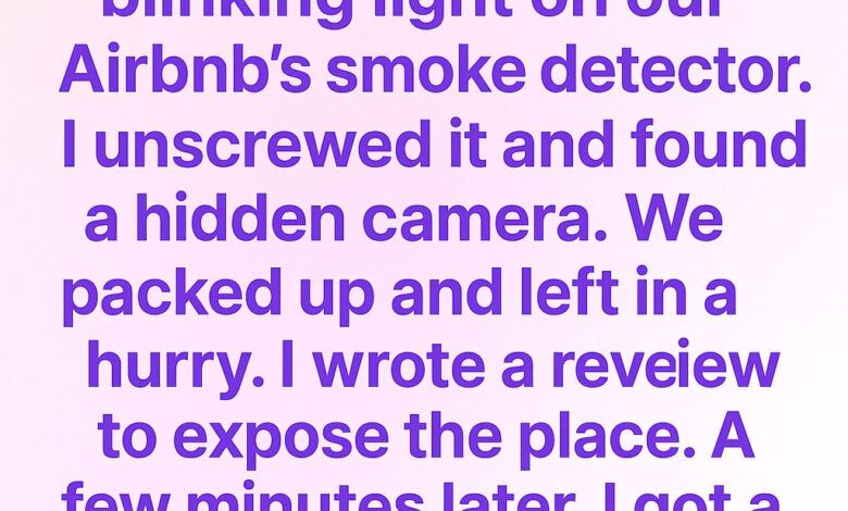 In our Airbnb, a blinking smoke detector hid a camera. We packed and fled. From a diner, I posted a warning—only to get a reply: