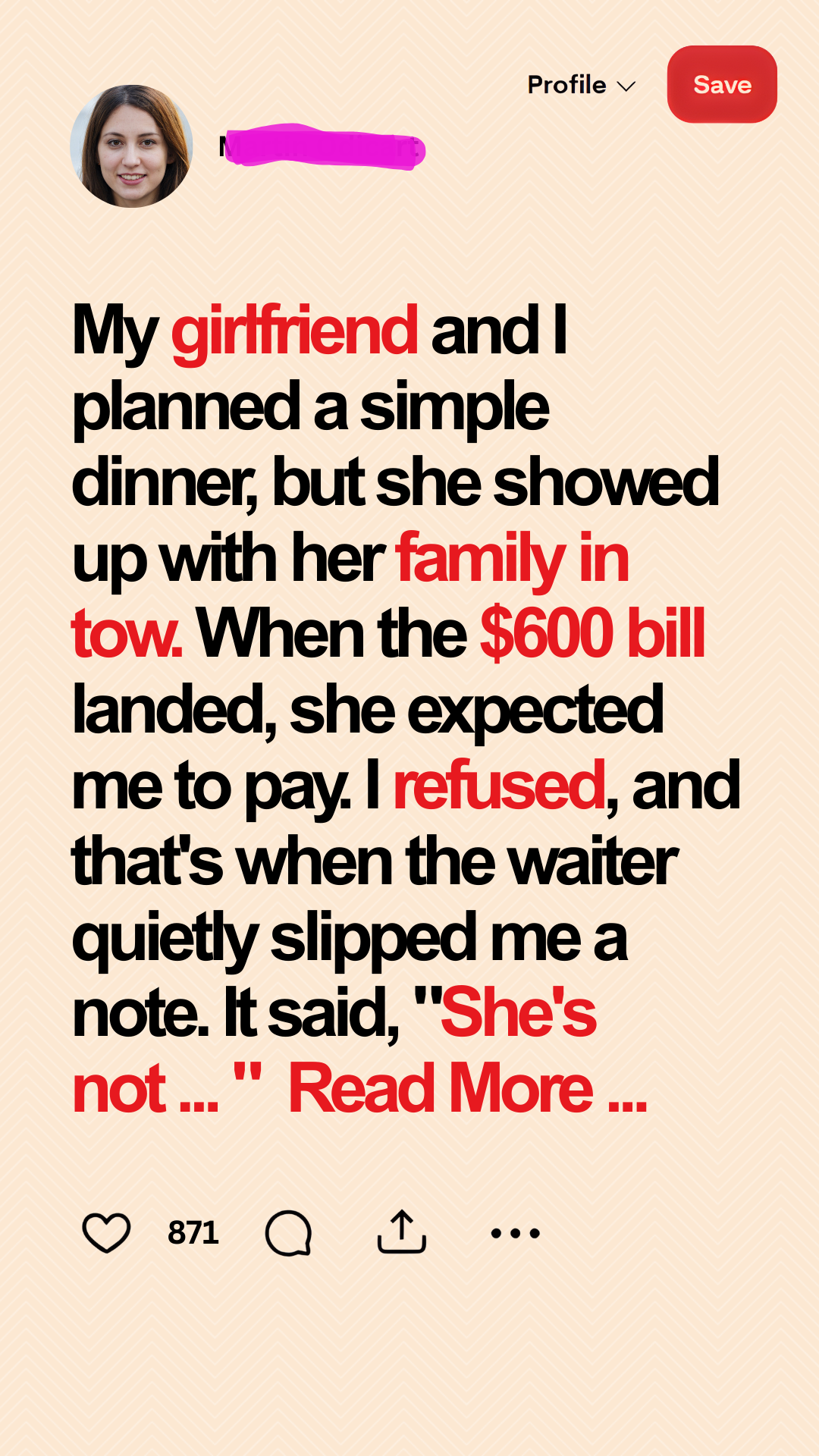 Nothing extravagant. Just a quiet Friday night at a mid-range restaurant downtown. We’d both had long weeks, and I thought it would be a nice chance to unwind, talk, and maybe discuss the next step in our relationship. We’d been together almost a year. I was starting to think about the future.