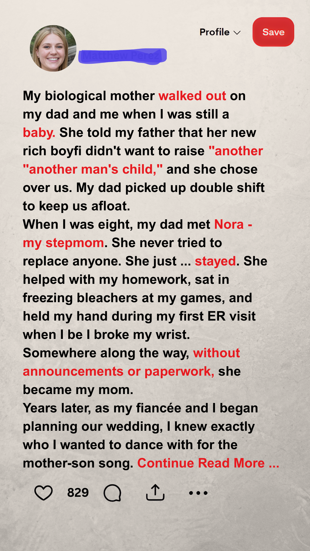 My biological mother walked out on my dad and me when I was still a baby. She told my father that her new rich boyfriend didn’t want to raise “another man’s child,” and she chose him over us.