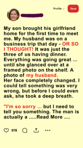 Laura thought meeting her son’s girlfriend would be a joyful milestone. Instead, one family photo exposed a devastating secret: Sophie recognized the man in the frame. He wasn’t just Ryan’s father—he was living a double life. What followed was a night of betrayal, confrontation, and the collapse of a twenty-year marriage.